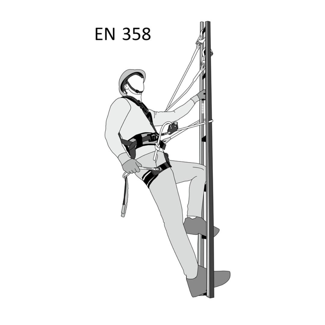 A: No. A work positioning lanyard certified to EN 358 is not a fall arrest device and must never be used as one. Where free fall is possible, a separate fall arrest device, either a retractable fall arrester or an energy absorbing lanyard, must be connected to the dorsal D-ring of the full body harness simultaneously. The work positioning lanyard keeps you in your working position. The fall arrest device catches you if that position fails.