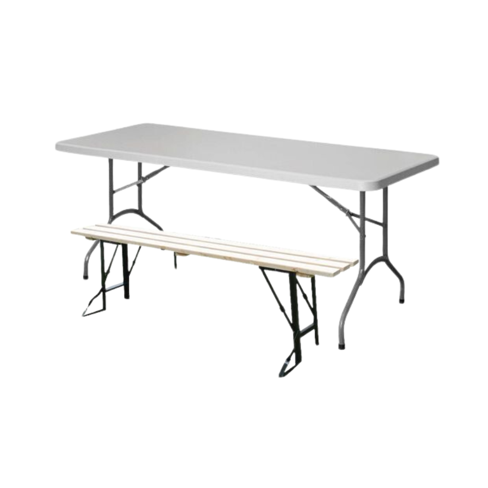 A Folding Canteen Bench and Table is a portable seating and dining unit used in construction sites and other outdoor environments to provide workers with a place to rest, eat, and socialize.