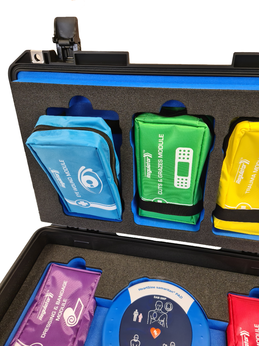 Log in to access trade discountsThis comprehensive hybrid trauma kit which includes a Heartsine 500P defibrillator is designed to address a wide range of traumas which can be experienced on-site or in any public building.