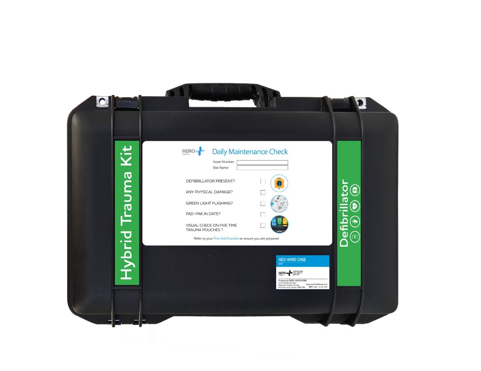In addition to the casing, the contents are protected by thermal protection foam ensuring the defibrillator and other contents are always ready to use.