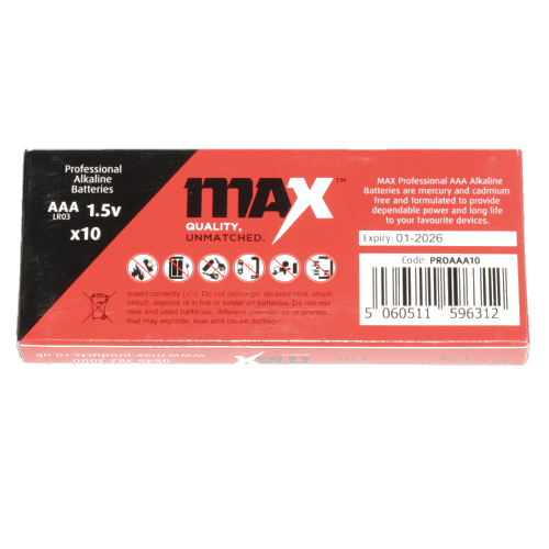 | Product Name | MAX Professional Alkaline AAA Batteries (LR03) - Pack of 10 |