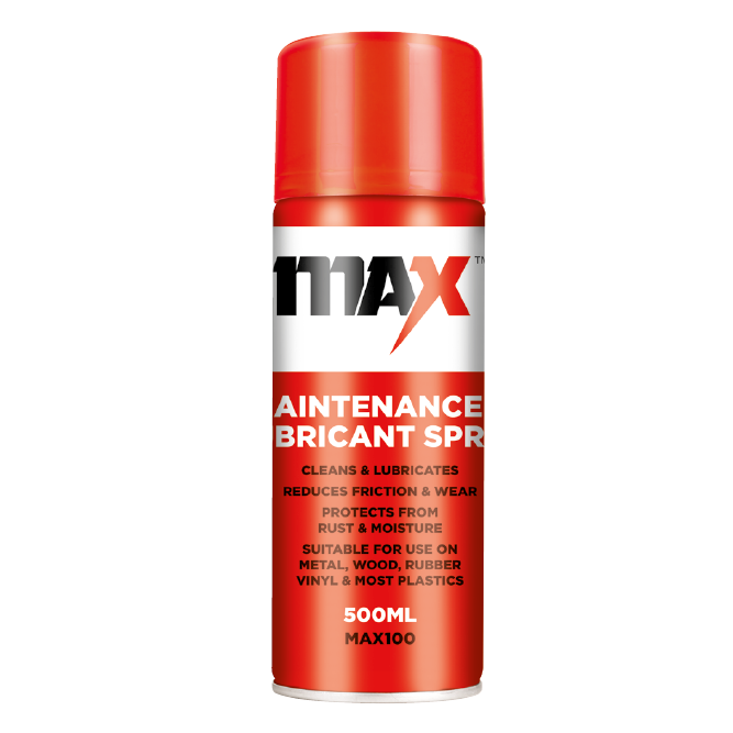 MAX100 High Quality Lubricant Spray is a 500ml maintenance aerosol for everyday servicing tasks where parts need cleaning, lubrication, and an added layer of moisture resistance. It is suitable for use across common site and workshop materials, helping keep hinges, mechanisms, and fittings operating smoothly with less friction-driven wear.