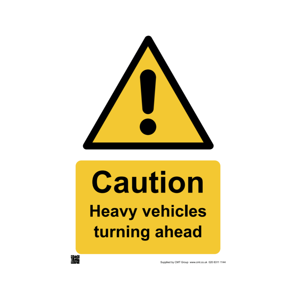 Safety Sign Caution heavy vehicles turning ahead 420x594mm A2 - 3mm Correx