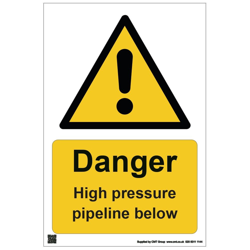 Site Safety - 420x594mm A2 3mm Correx - Danger! High Pressure Pipeline Below