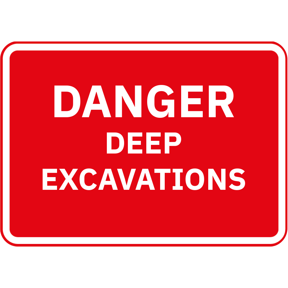 Metal Frame Road Sign PLATE ONLY - 1050mm x750mm - Printed: Danger Deep Excavation
