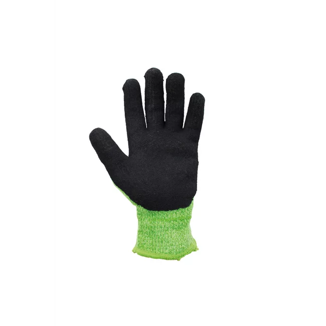 The TraffiGlove Thermal Cut Level 5 Safety Glove (Green) conforms to EN388:2016 4X43D & EN511:2006 X1X standards. The glove has a single-layer blended HPPE and aramid liner with additional steel for high-level cut risks. The glove has a brushed acrylic lining that keeps hands warmer for longer with higher cut protection. The matt finish X-Dura latex coating for excellent grip in wet and dry conditions.